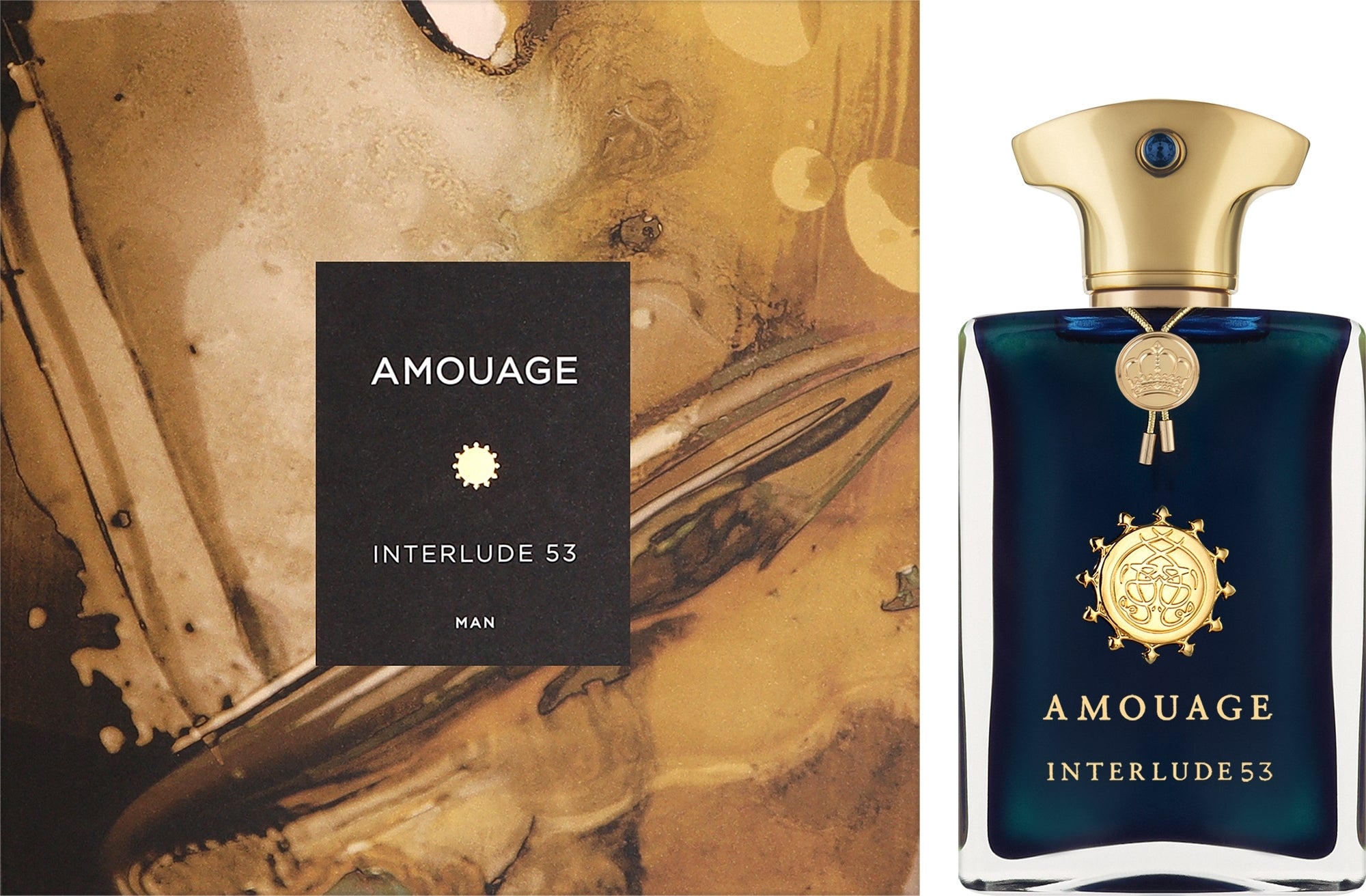Interlude 53 Man revels within an intoxicating depth of fragrance, named for its incredibly potent 53% concentration of essential oils. A refined celebration of spicy and woody fragrances, it opens with a sharp twist of pimento berry, bergamot, and oregano. A warm heart feeds the flavours of amber, frankincense, opoponax, and cistus. The base enhances with a smoky leather accord, agarwood, patchouli, and sandalwood.