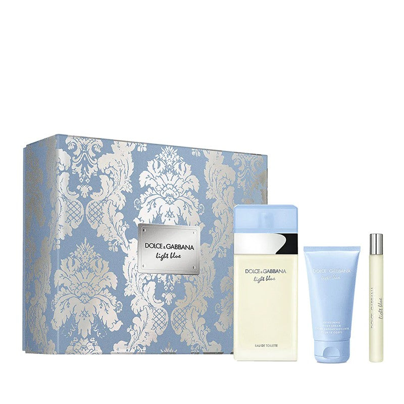 This Dolce & Gabbana Light Blue Gift Set includes a 100ml Eau De Toilette, 50ml Body Cream, and a 10ml Eau De Toilette.