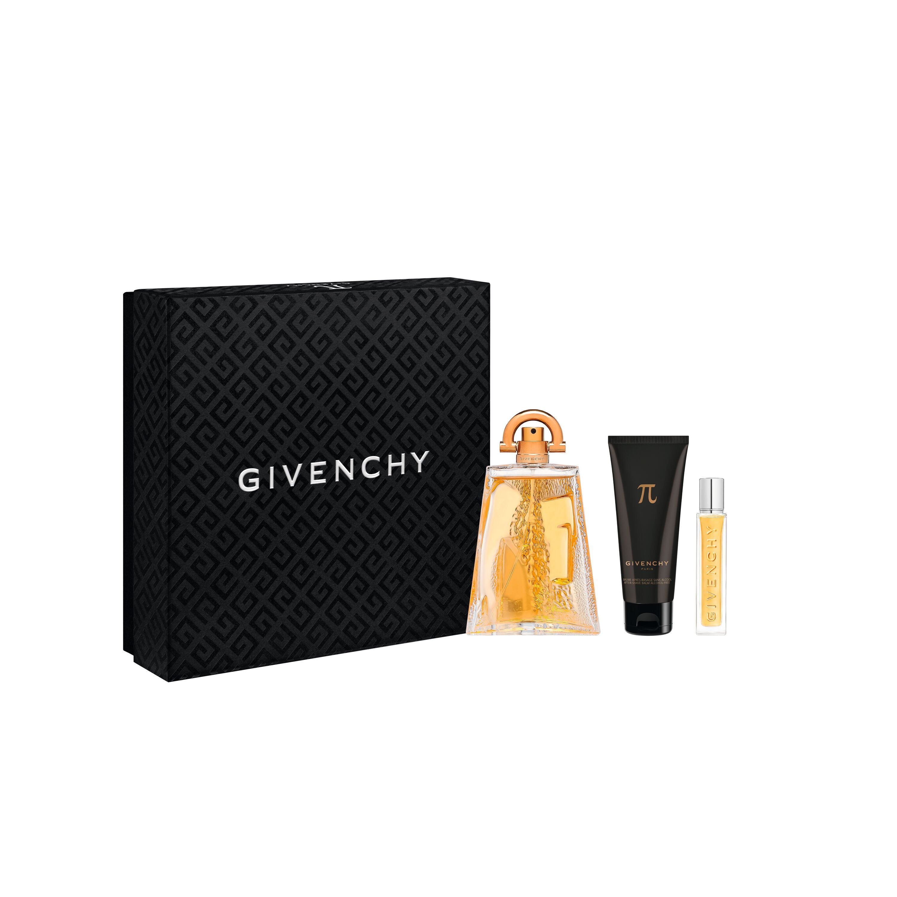 Celebrate with a Givenchy Pi gift set, featuring Givenchy Pi Eau de Toilette, a travel spray, and a luxurious alcohol-free after-shave balm. Pi’s magnetic blend of strong ironwood and delicate benzoin crystals delivers a long-lasting, captivating scent.