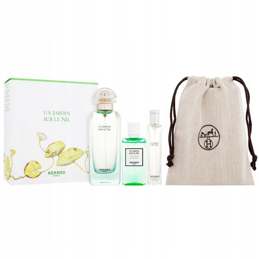 Experience the luxurious scent of HERMÈS Jardins Sur Le Nil with this gift set. Created by perfumer Jean-Claude Ellena, is a journey to the island-gardens of Aswan in Egypt. With notes of life and generosity, this composition captures the essence of the Nile.